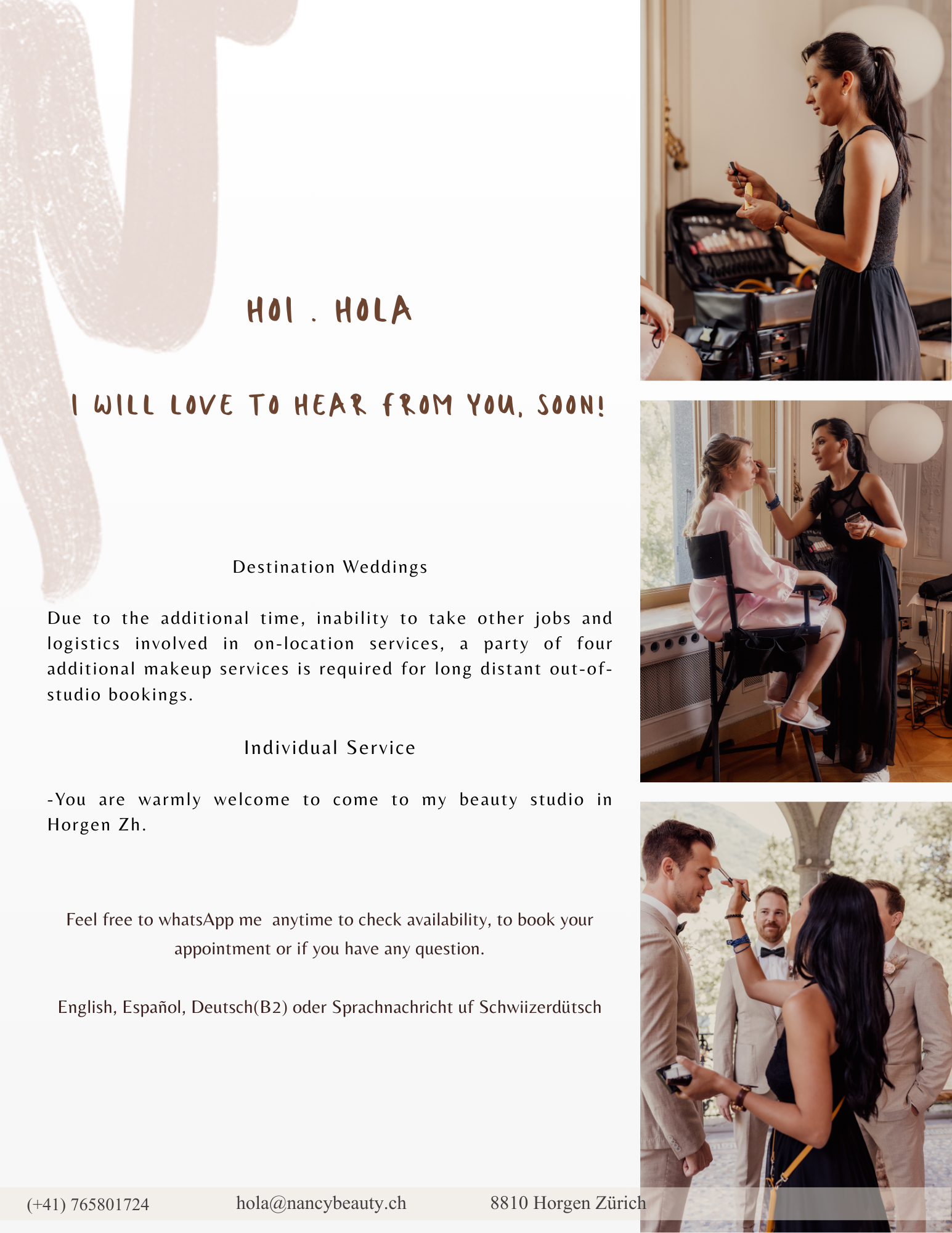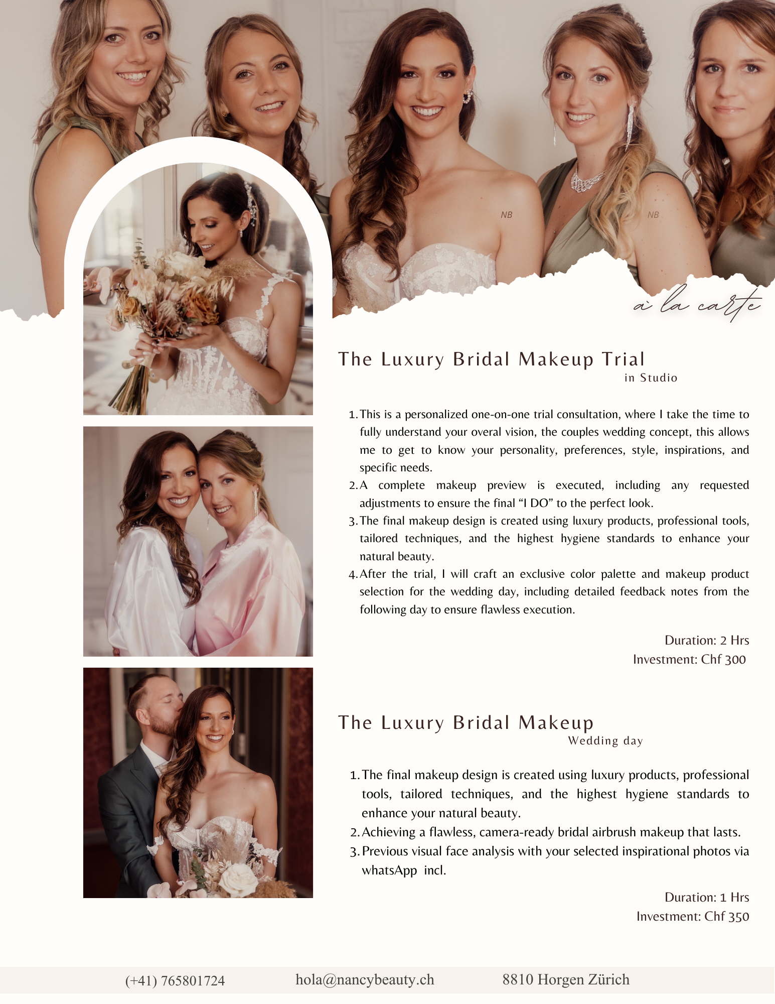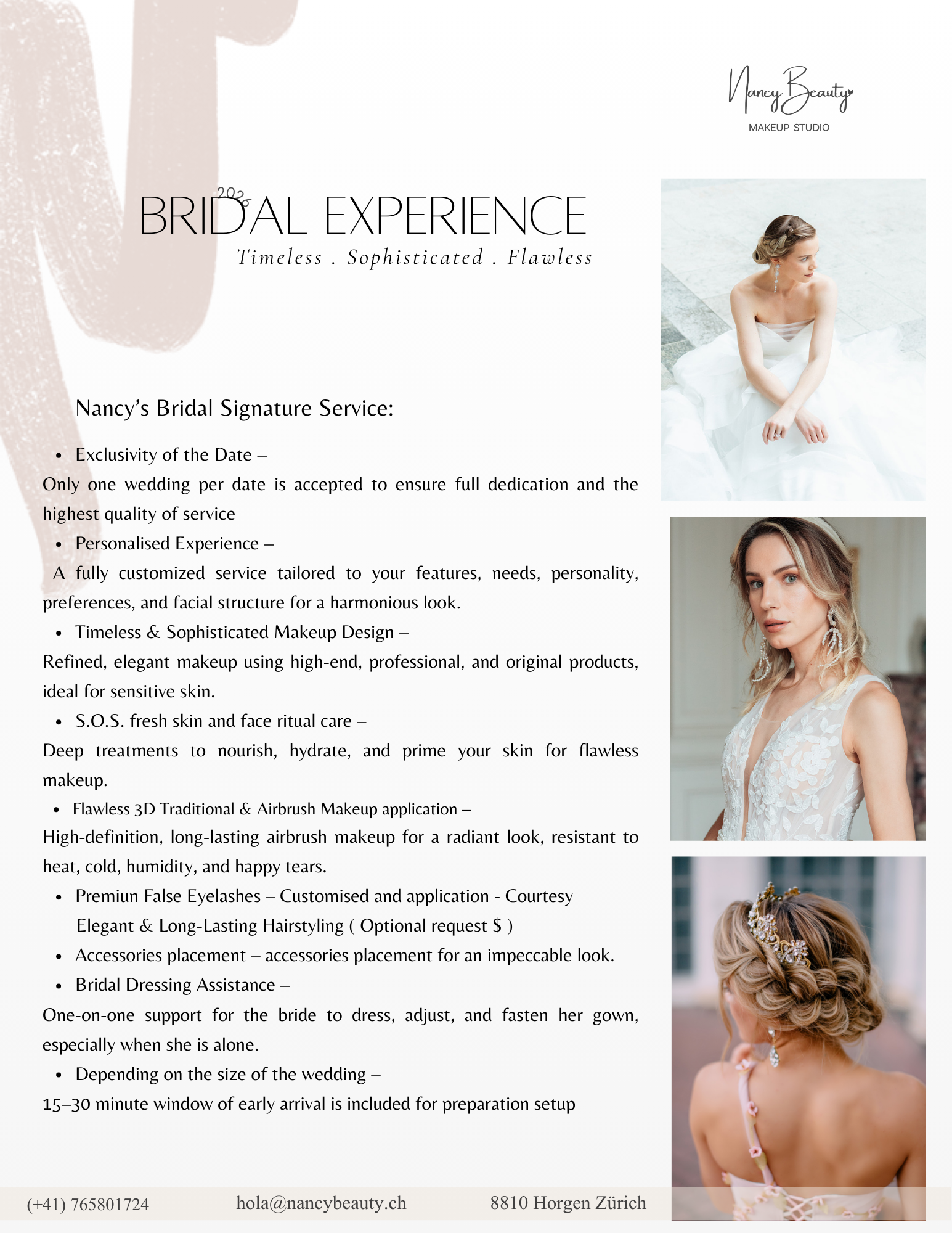 Destination service on the wedding day without a minimum of additional makeup services in canton Zürich